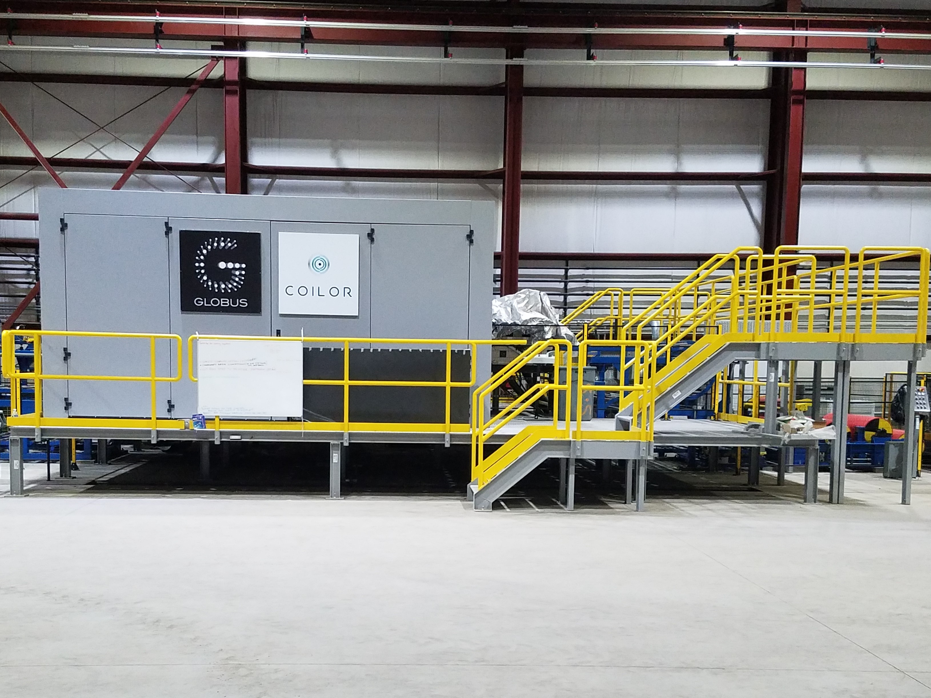 Globus's innovation lies in the fact that the continuous process is inherently faster to operate, thus allowing for higher productivity rates, and allows the same flexibility of sheet-by-sheet printing, since different images can be printed on the coil without stopping the line.